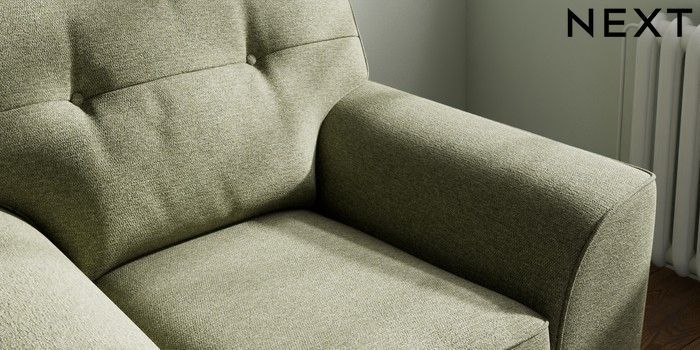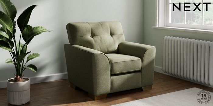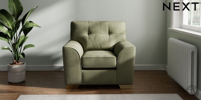 7.2.10 Stamford Buttoned Back Armchair Tweedy Chenille Mid Moss Green Square Angle - Brushed Brass | Made Click here to use our website with more accessibility support, for example screen readers