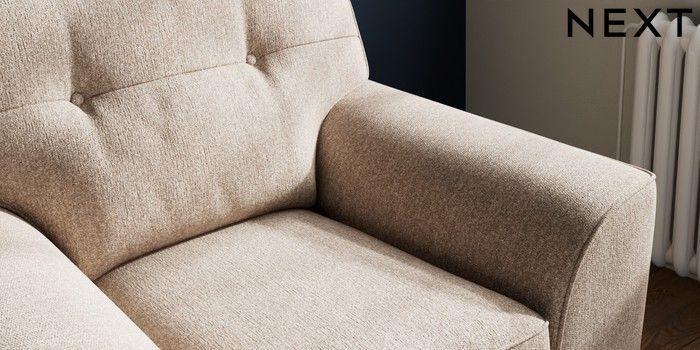 7.2.10 Stamford Buttoned Back Armchair Tweedy Chenille Mid Natural Square Angle - Gunmetal | Made Click here to use our website with more accessibility support, for example screen readers