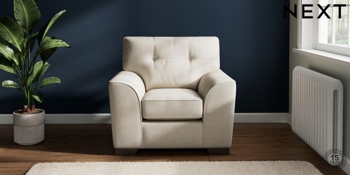 7.2.10 Stamford Buttoned Back Armchair Tweedy Chenille Oyster Square Angle - Gunmetal | Made Click here to use our website with more accessibility support, for example screen readers