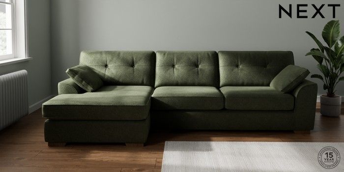 7.2.10 Stamford Buttoned Back Large Sofa Chaise - Left Hand Boucle Chenille Dark Moss Green Large Square Angle - Mid | Made Click here to use our website with more accessibility support, for example screen readers
