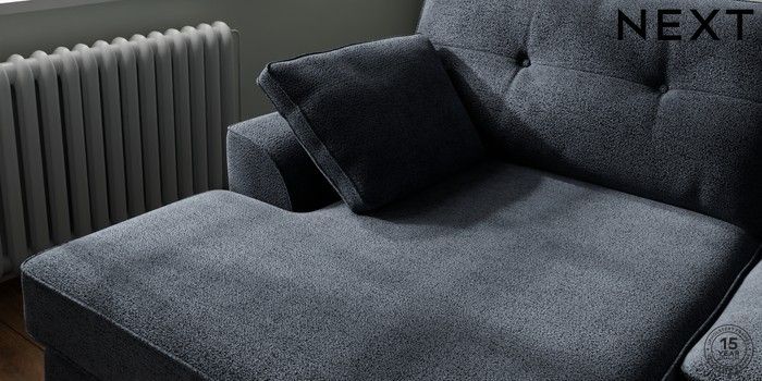 7.2.10 Stamford Buttoned Back Large Sofa Chaise - Left Hand Boucle Chenille Dark Slate Blue Large Square Angle - Light | Made Click here to use our website with more accessibility support, for example screen readers