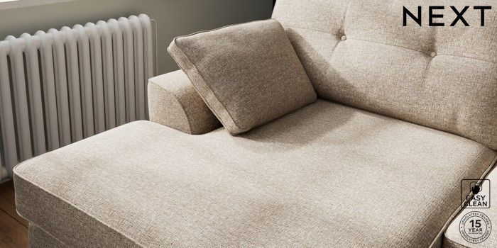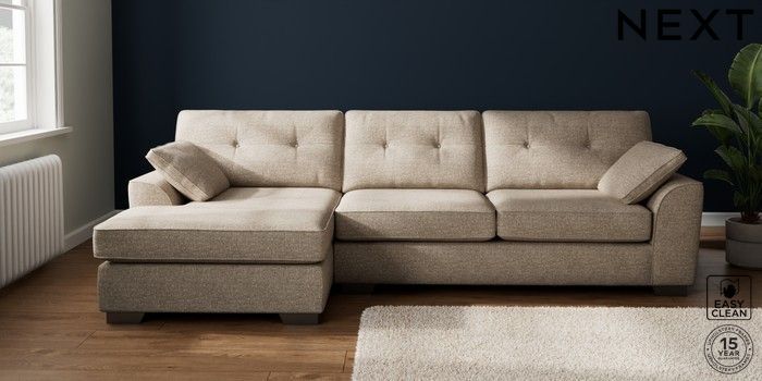 7.2.10 Stamford Buttoned Back Large Sofa Chaise - Left Hand Chunky Boucle Easy Clean Mid Natural Large Square Angle - Gunmetal | Made Click here to use our website with more accessibility support, for example screen readers