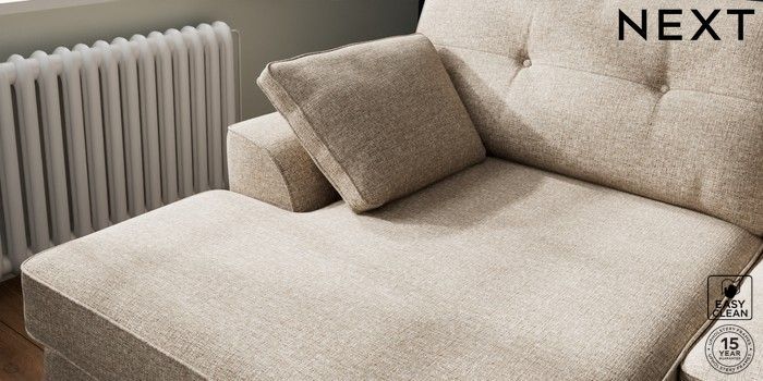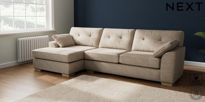 7.2.10 Stamford Buttoned Back Large Sofa Chaise - Left Hand Chunky Boucle Easy Clean Mid Natural Large Square Angle - Light | Made Click here to use our website with more accessibility support, for example screen readers