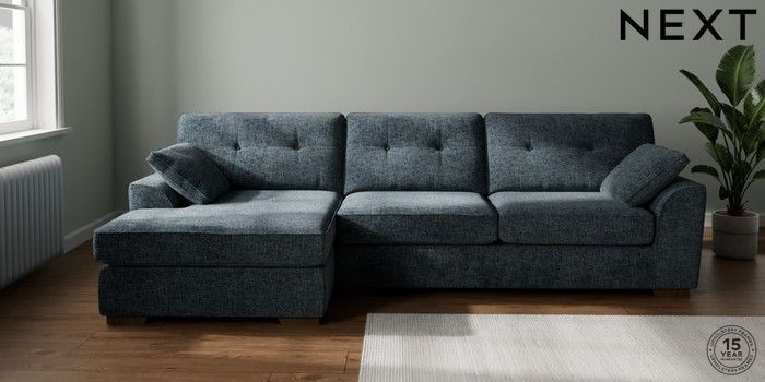 7.2.10 Stamford Buttoned Back Large Sofa Chaise - Left Hand Chunky Chenille Dark Navy Blue Large Square Angle - Mid | Made Click here to use our website with more accessibility support, for example screen readers
