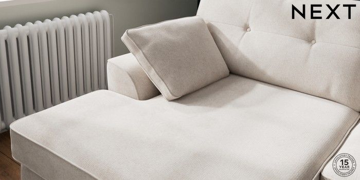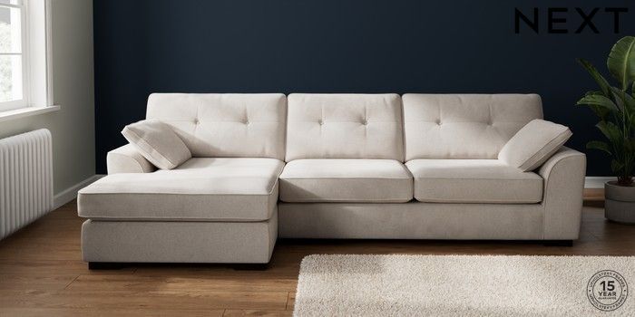 7.2.10 Stamford Buttoned Back Large Sofa Chaise - Left Hand Chunky Chenille Oyster Large Square Angle - Dark | Made Click here to use our website with more accessibility support, for example screen readers