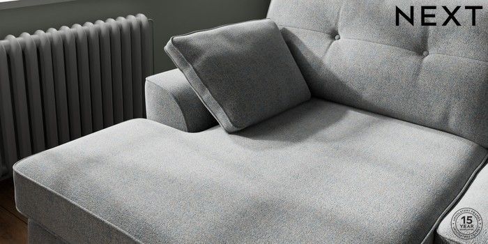 7.2.10 Stamford Buttoned Back Large Sofa Chaise - Left Hand Chunky Marl Mid Grey Large Square Angle - Brushed Brass | Made Click here to use our website with more accessibility support, for example screen readers