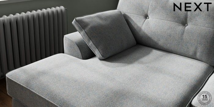 7.2.10 Stamford Buttoned Back Large Sofa Chaise - Left Hand Chunky Marl Mid Grey Large Square Angle - Light | Made Click here to use our website with more accessibility support, for example screen readers