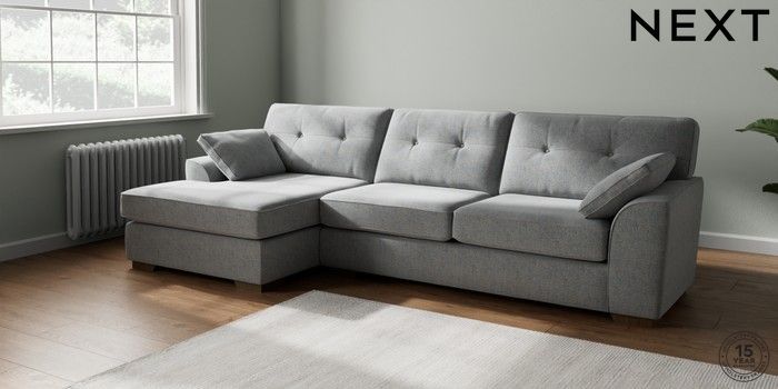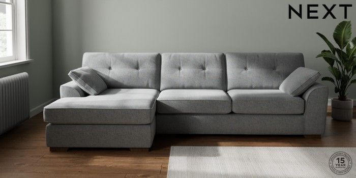 7.2.10 Stamford Buttoned Back Large Sofa Chaise - Left Hand Chunky Marl Mid Grey Large Square Angle - Mid | Made Click here to use our website with more accessibility support, for example screen readers