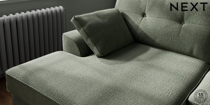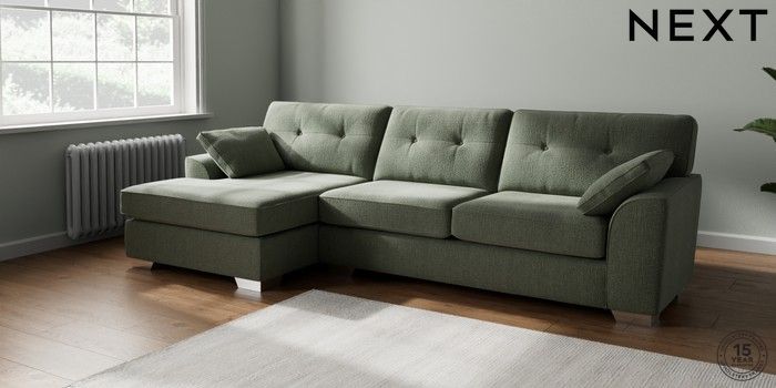 7.2.10 Stamford Buttoned Back Large Sofa Chaise - Left Hand Chunky Texture Mid Forest Green Large Square Angle - Chrome Metal | Made Click here to use our website with more accessibility support, for example screen readers