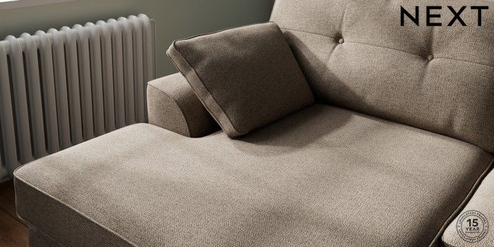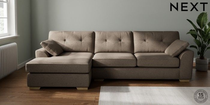 7.2.10 Stamford Buttoned Back Large Sofa Chaise - Left Hand Chunky Weave Dark Natural Large Square Angle - Light | Made Click here to use our website with more accessibility support, for example screen readers