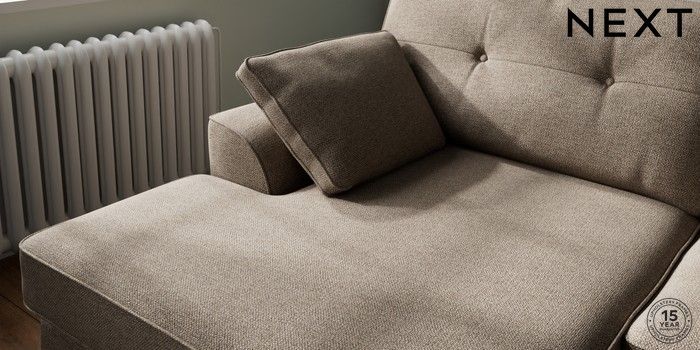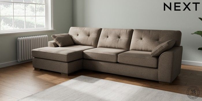 7.2.10 Stamford Buttoned Back Large Sofa Chaise - Left Hand Chunky Weave Dark Natural Large Square Angle - Mid | Made Click here to use our website with more accessibility support, for example screen readers