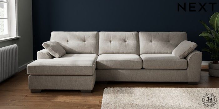 7.2.10 Stamford Buttoned Back Large Sofa Chaise - Left Hand Chunky Weave Dove Grey Large Square Angle - Gunmetal | Made Click here to use our website with more accessibility support, for example screen readers