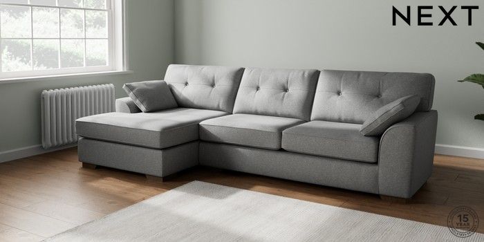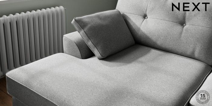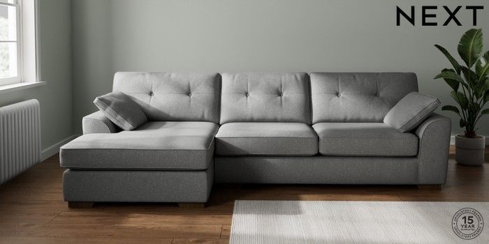 7.2.10 Stamford Buttoned Back Large Sofa Chaise - Left Hand Chunky Weave Mid Grey Large Square Angle - Mid | Made Click here to use our website with more accessibility support, for example screen readers