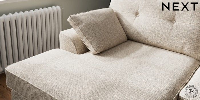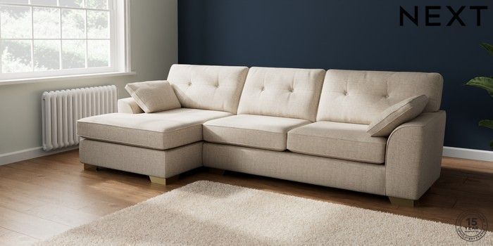 7.2.10 Stamford Buttoned Back Large Sofa Chaise - Left Hand Chunky Weave Mid Natural Large Square Angle - Brushed Brass | Made Click here to use our website with more accessibility support, for example screen readers