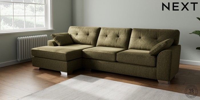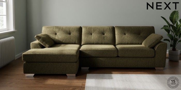 7.2.10 Stamford Buttoned Back Large Sofa Chaise - Left Hand Cotswold Chenille Dark Green Large Square Angle - Chrome Metal | Made Click here to use our website with more accessibility support, for example screen readers
