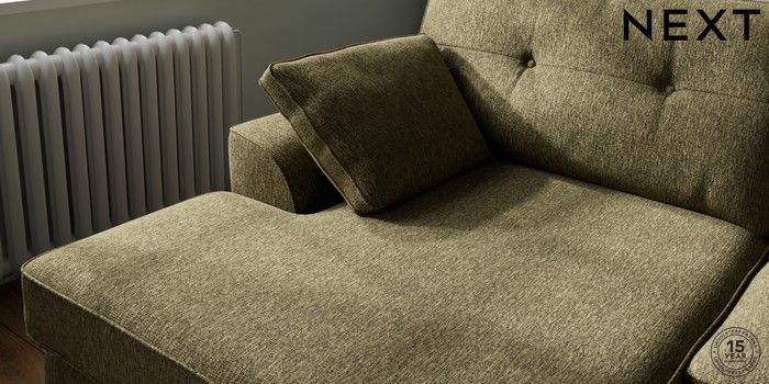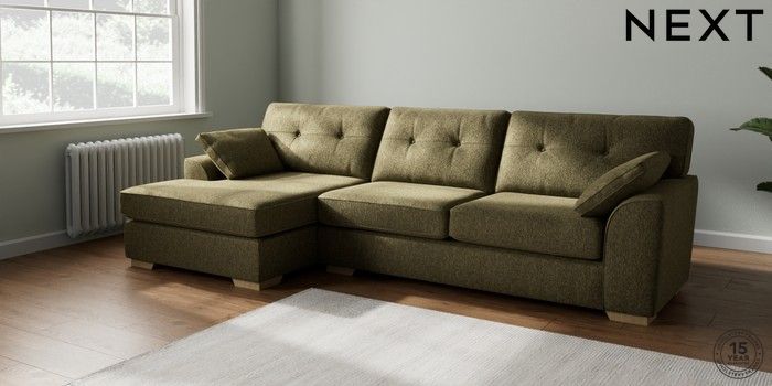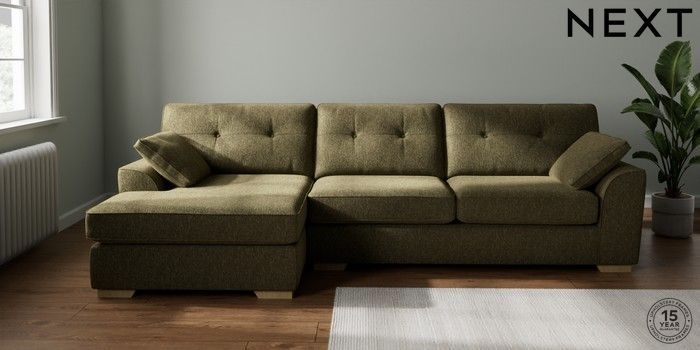 7.2.10 Stamford Buttoned Back Large Sofa Chaise - Left Hand Cotswold Chenille Dark Green Large Square Angle - Light | Made Click here to use our website with more accessibility support, for example screen readers