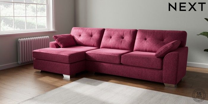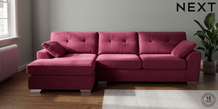7.2.10 Stamford Buttoned Back Large Sofa Chaise - Left Hand Cotswold Chenille Dark Raspberry Pink Large Square Angle - Chrome Metal | Made Click here to use our website with more accessibility support, for example screen readers