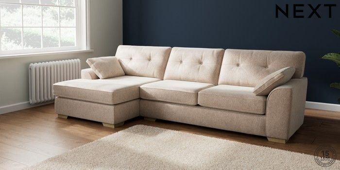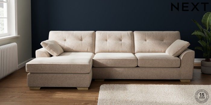 7.2.10 Stamford Buttoned Back Large Sofa Chaise - Left Hand Cotswold Chenille Light Natural Large Square Angle - Light | Made Click here to use our website with more accessibility support, for example screen readers