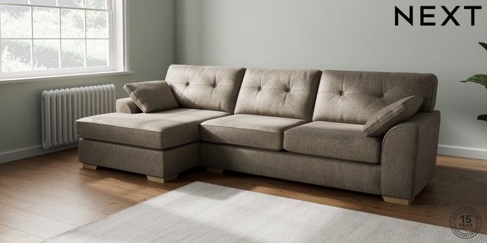 7.2.10 Stamford Buttoned Back Large Sofa Chaise - Left Hand Cotswold Chenille Mid Mink Brown Large Square Angle - Light | Made Click here to use our website with more accessibility support, for example screen readers