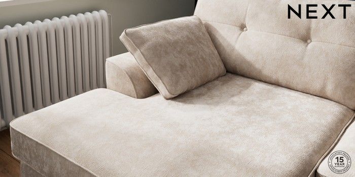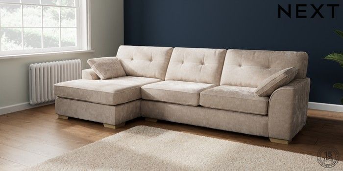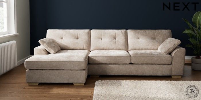 7.2.10 Stamford Buttoned Back Large Sofa Chaise - Left Hand Distressed Velour Mid Natural Large Square Angle - Light | Made Click here to use our website with more accessibility support, for example screen readers