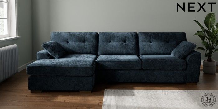 7.2.10 Stamford Buttoned Back Large Sofa Chaise - Left Hand Distressed Velour Midnight Blue Large Square Angle - Mid | Made Click here to use our website with more accessibility support, for example screen readers