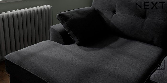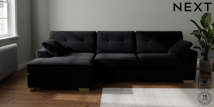 7.2.10 Stamford Buttoned Back Large Sofa Chaise - Left Hand Fine Chenille Easy Clean Black Large Square Angle - Brushed Brass | Made Click here to use our website with more accessibility support, for example screen readers