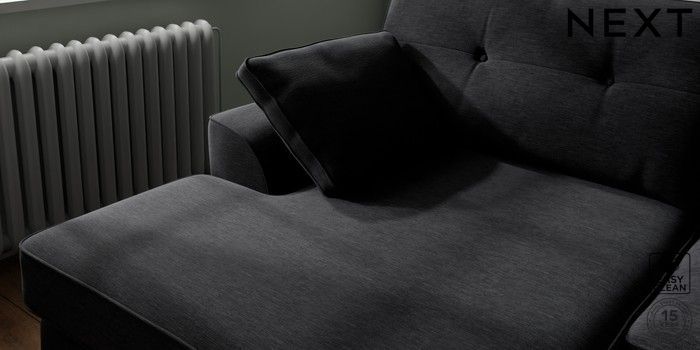 7.2.10 Stamford Buttoned Back Large Sofa Chaise - Left Hand Fine Chenille Easy Clean Black Large Square Angle - Dark | Made Click here to use our website with more accessibility support, for example screen readers