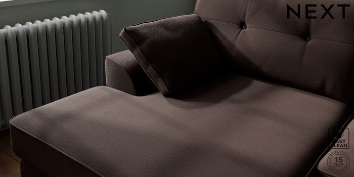 7.2.10 Stamford Buttoned Back Large Sofa Chaise - Left Hand Fine Chenille Easy Clean Chocolate Brown Large Square Angle - Gunmetal | Made Click here to use our website with more accessibility support, for example screen readers