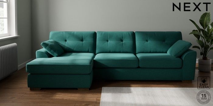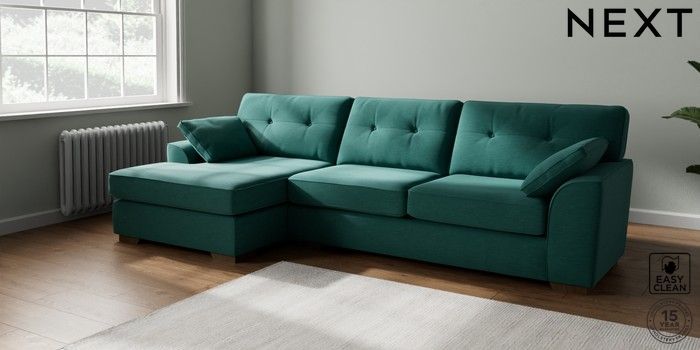 7.2.10 Stamford Buttoned Back Large Sofa Chaise - Left Hand Fine Chenille Easy Clean Dark Juniper Green Large Square Angle - Mid | Made Click here to use our website with more accessibility support, for example screen readers