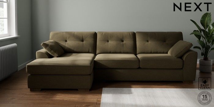 7.2.10 Stamford Buttoned Back Large Sofa Chaise - Left Hand Fine Chenille Easy Clean Dark Moss Green Large Square Angle - Mid | Made Click here to use our website with more accessibility support, for example screen readers