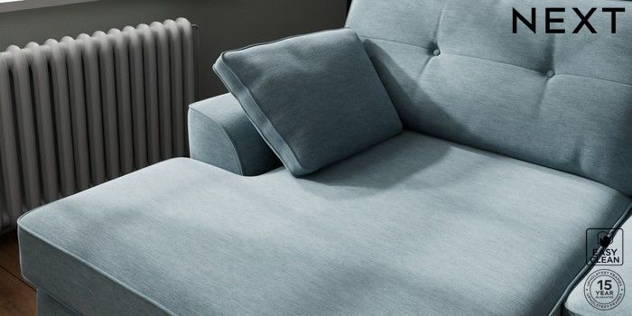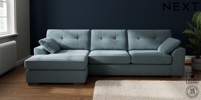 7.2.10 Stamford Buttoned Back Large Sofa Chaise - Left Hand Fine Chenille Easy Clean Mid Blue Large Square Angle - Mid | Made Click here to use our website with more accessibility support, for example screen readers