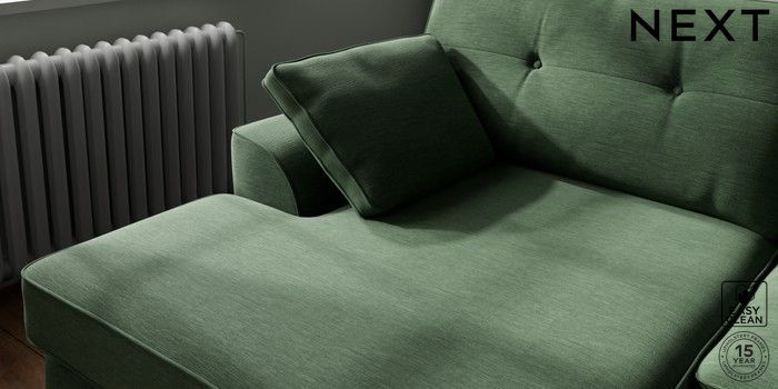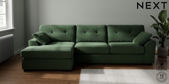 7.2.10 Stamford Buttoned Back Large Sofa Chaise - Left Hand Fine Chenille Easy Clean Mid Khaki Green Large Square Angle - Dark | Made Click here to use our website with more accessibility support, for example screen readers