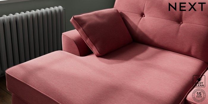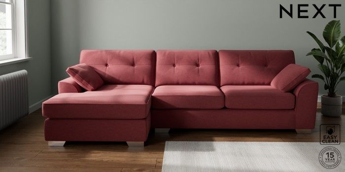 7.2.10 Stamford Buttoned Back Large Sofa Chaise - Left Hand Fine Chenille Easy Clean Mid Pink Large Square Angle - Chrome Metal | Made Click here to use our website with more accessibility support, for example screen readers