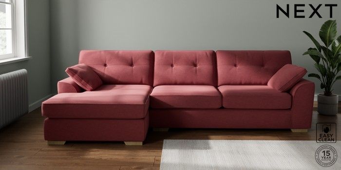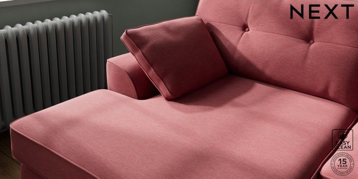 7.2.10 Stamford Buttoned Back Large Sofa Chaise - Left Hand Fine Chenille Easy Clean Mid Pink Large Square Angle - Light | Made Click here to use our website with more accessibility support, for example screen readers