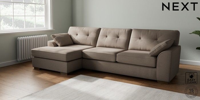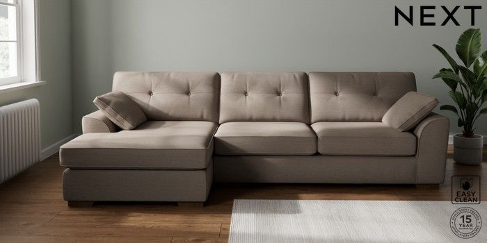 7.2.10 Stamford Buttoned Back Large Sofa Chaise - Left Hand Fine Chenille Easy Clean Mid Taupe Brown Large Square Angle - Mid | Made Click here to use our website with more accessibility support, for example screen readers