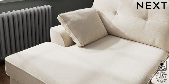 7.2.10 Stamford Buttoned Back Large Sofa Chaise - Left Hand Fine Chenille Easy Clean Oyster Large Square Angle - Mid | Made Click here to use our website with more accessibility support, for example screen readers