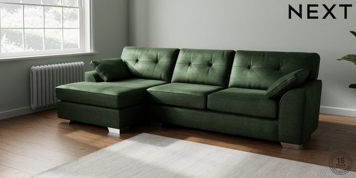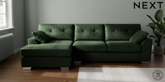 7.2.10 Stamford Buttoned Back Large Sofa Chaise - Left Hand Luxe Chenille Dark Green Large Square Angle - Chrome Metal | Made Click here to use our website with more accessibility support, for example screen readers