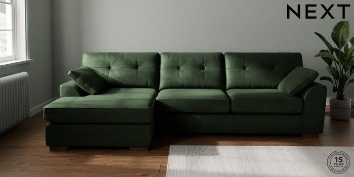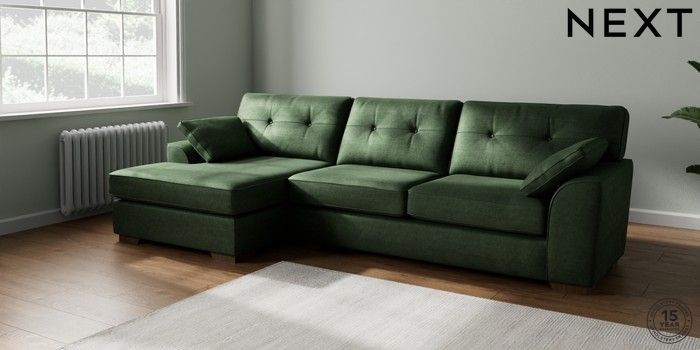 7.2.10 Stamford Buttoned Back Large Sofa Chaise - Left Hand Luxe Chenille Dark Green Large Square Angle - Mid | Made Click here to use our website with more accessibility support, for example screen readers