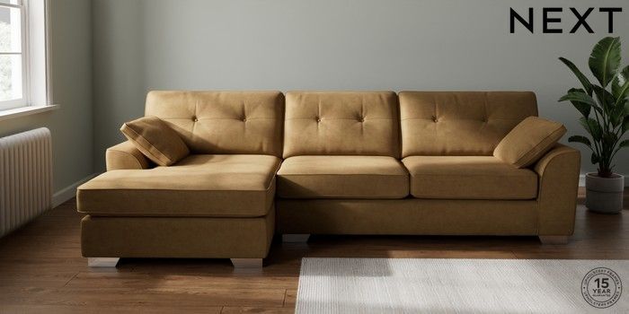 7.2.10 Stamford Buttoned Back Large Sofa Chaise - Left Hand Luxe Chenille Honey Yellow Large Square Angle - Chrome Metal | Made Click here to use our website with more accessibility support, for example screen readers