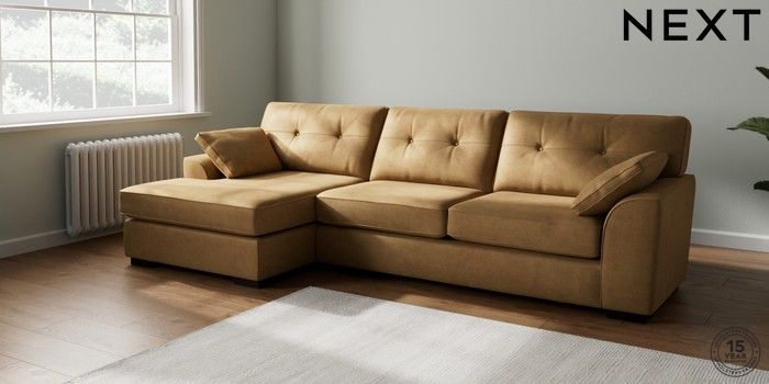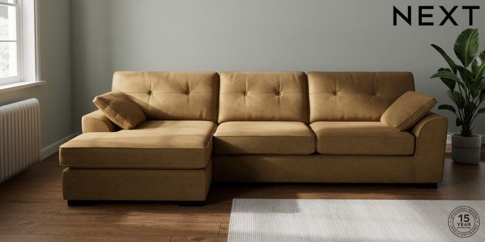 7.2.10 Stamford Buttoned Back Large Sofa Chaise - Left Hand Luxe Chenille Honey Yellow Large Square Angle - Dark | Made Click here to use our website with more accessibility support, for example screen readers