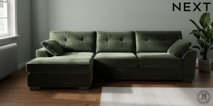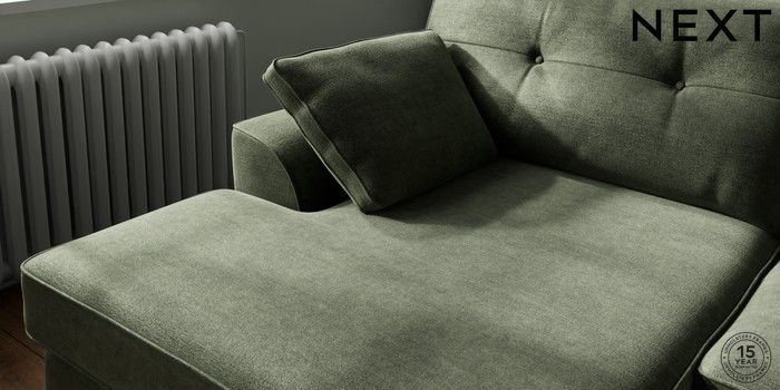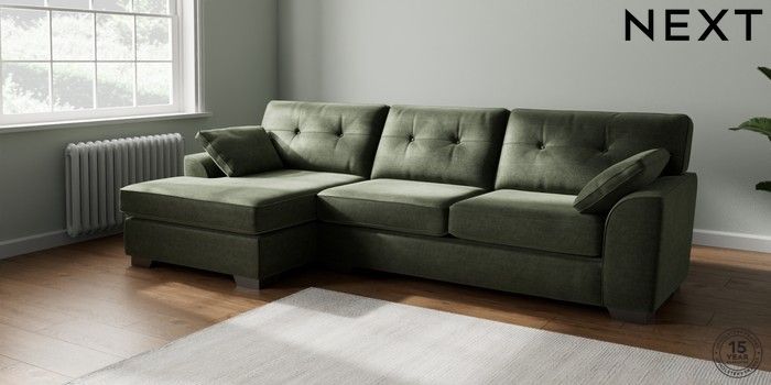 7.2.10 Stamford Buttoned Back Large Sofa Chaise - Left Hand Luxe Chenille Mid Green Large Square Angle - Gunmetal | Made Click here to use our website with more accessibility support, for example screen readers