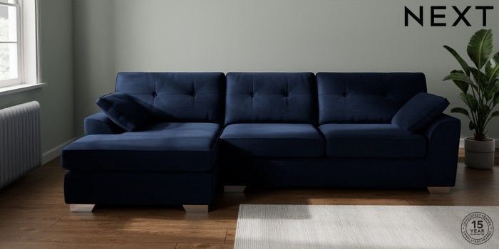 7.2.10 Stamford Buttoned Back Large Sofa Chaise - Left Hand Luxe Chenille Navy Blue Large Square Angle - Chrome Metal | Made Click here to use our website with more accessibility support, for example screen readers