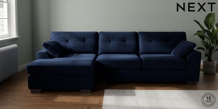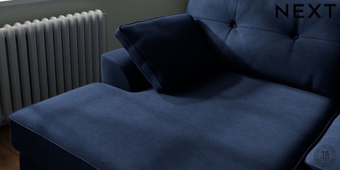 7.2.10 Stamford Buttoned Back Large Sofa Chaise - Left Hand Luxe Chenille Navy Blue Large Square Angle - Gunmetal | Made Click here to use our website with more accessibility support, for example screen readers