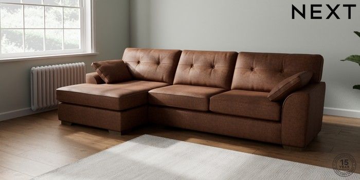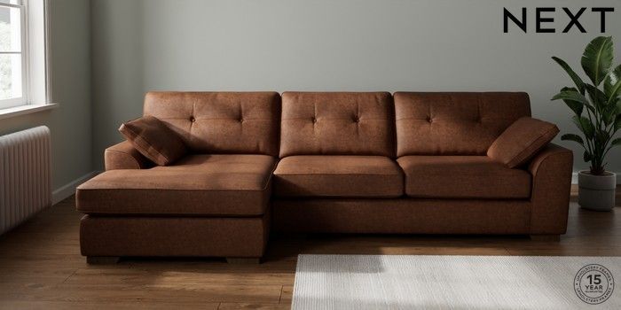 7.2.10 Stamford Buttoned Back Large Sofa Chaise - Left Hand Monza Faux Leather Easy Clean Chestnut Brown Large Square Angle - Mid | Made Click here to use our website with more accessibility support, for example screen readers