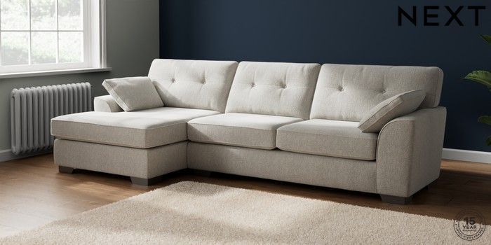 7.2.10 Stamford Buttoned Back Large Sofa Chaise - Left Hand Multi Weave Light Blue Large Square Angle - Gunmetal | Made Click here to use our website with more accessibility support, for example screen readers