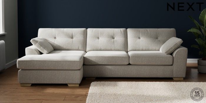 7.2.10 Stamford Buttoned Back Large Sofa Chaise - Left Hand Multi Weave Light Blue Large Square Angle - Light | Made Click here to use our website with more accessibility support, for example screen readers
