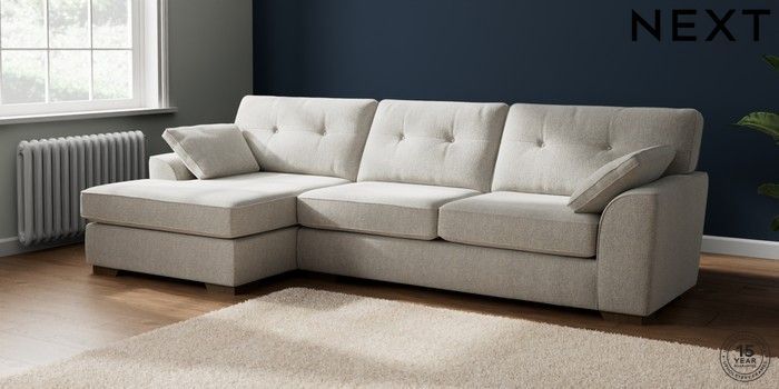 7.2.10 Stamford Buttoned Back Large Sofa Chaise - Left Hand Multi Weave Light Blue Large Square Angle - Mid | Made Click here to use our website with more accessibility support, for example screen readers