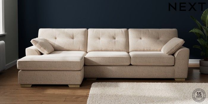 7.2.10 Stamford Buttoned Back Large Sofa Chaise - Left Hand Multi Weave Mid Natural Large Square Angle - Light | Made Click here to use our website with more accessibility support, for example screen readers