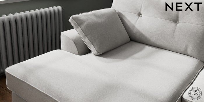 7.2.10 Stamford Buttoned Back Large Sofa Chaise - Left Hand Natural Mix Light Grey Large Square Angle - Gunmetal | Made Click here to use our website with more accessibility support, for example screen readers