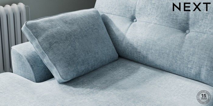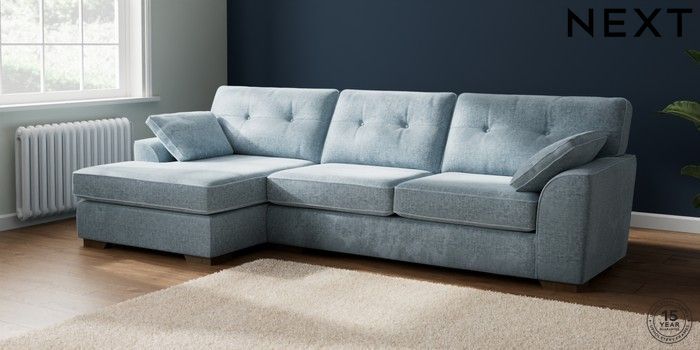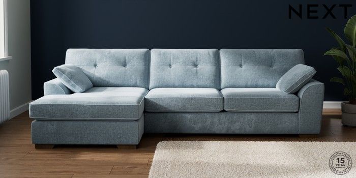 7.2.10 Stamford Buttoned Back Large Sofa Chaise - Left Hand Plush Chenille Light Blue Large Square Angle - Mid | Made Click here to use our website with more accessibility support, for example screen readers